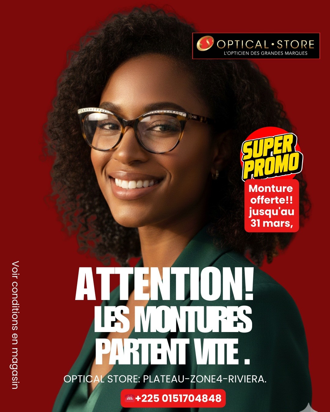 Avec des verriers mondialement reconnus comme fournisseurs et la possibilité de la 2eme paire Offerte, des offres Pack forfaitaire ;une garantie Offerte sur la monture et les verres. En plus d’un accueil chaleureux, la présence des opticiens professionnels pour un meilleur SAV.